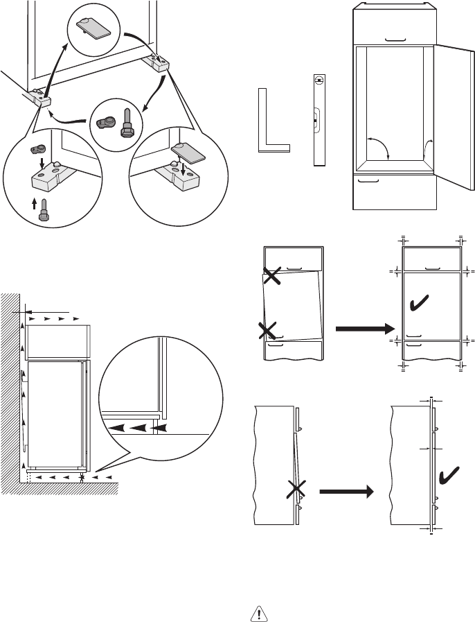 Justér køkkenlågerne, før apparatet installe-